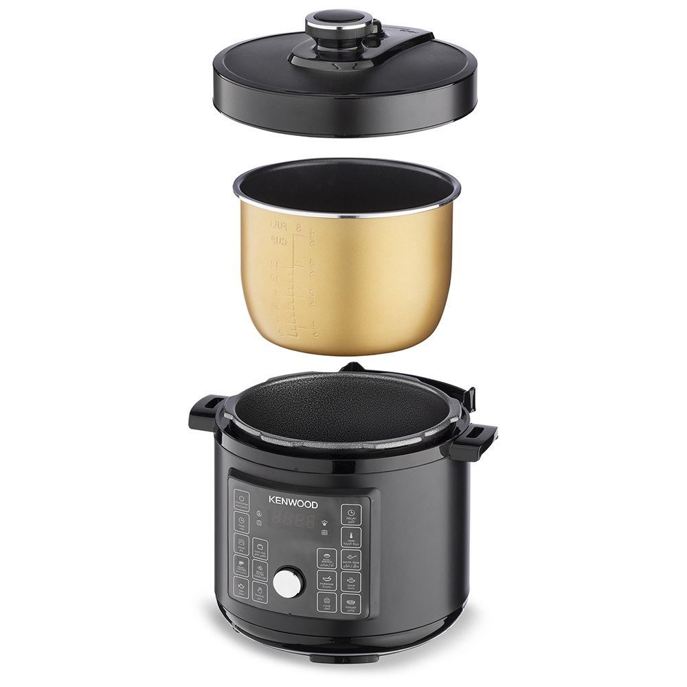 Elevate your cooking experience with the Kenwood 6L Pressure Cooker Multicooker. Featuring a powerful 1000W heating element and a non-stick aluminum inner pot, it ensures perfect results every time. The removable cover with a safety exhaust valve also adds peace of mind. With an intuitive LED display and adjustable settings, you can effortlessly explore 16 smart cooking programs, including a 24-hour preset and delayed cooking function. Enjoy convenient, delicious meals with Kenwood!
