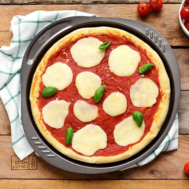 - Carbon steel pizza crisper pan