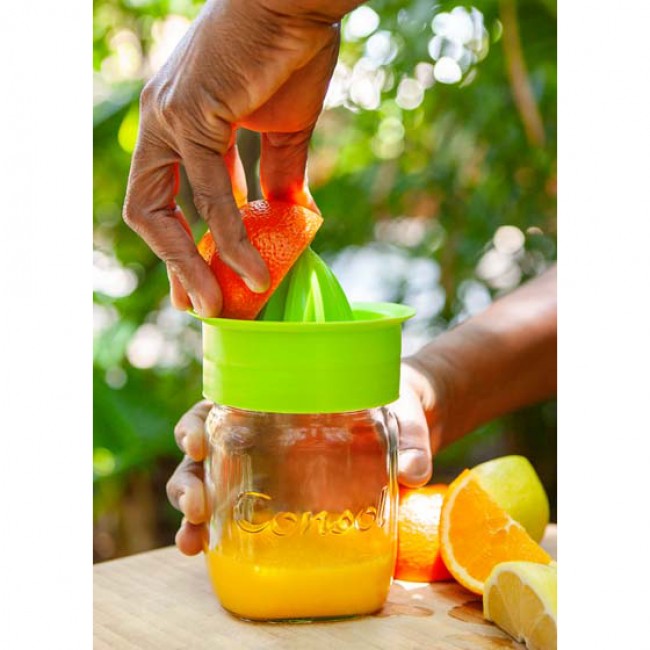 - Citrus juicer with glass storage bottle