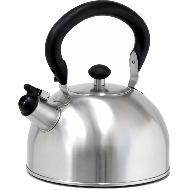 - 18/10 stainless steel whistling stovetop kettle