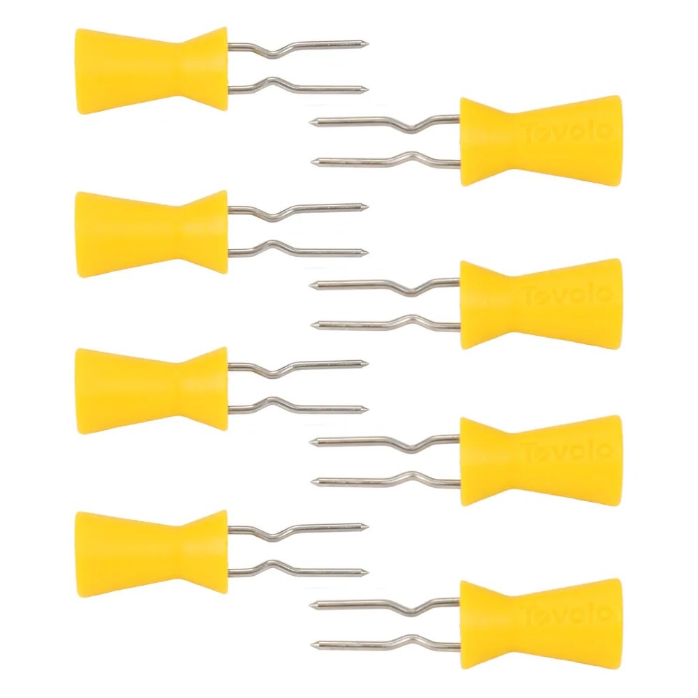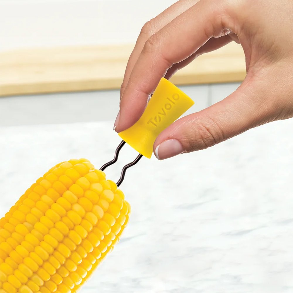 Enjoy no slipping or messes with these handy corn picks from Tovolo. Simply insert into each end of the cob and savour this sweet, delicious vegetable, and the handles help you keep a firm grip and fingers clean. Made of stainless steel and BPA-free plastic, these corn holders are dishwasher safe for easy clean-up.