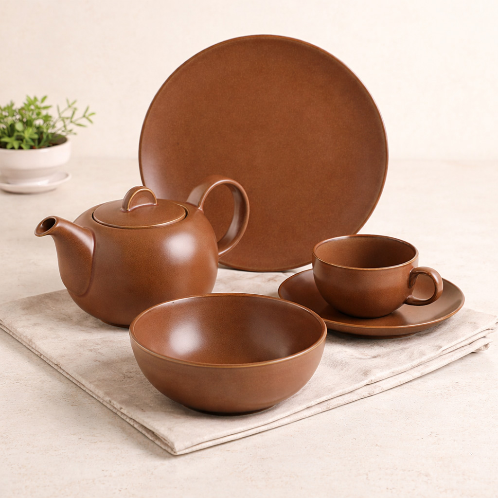 Omada’s Dunes tableware collection channels earthy warmth through rich brown tones and softly rounded silhouettes. The matte, tactile finish feels grounded and calm, pairing beautifully with natural linens and light interiors. Crafted in durable vitrified enamel, each piece balances everyday resilience with refined simplicity, inviting relaxed meals, mindful rituals, and contemporary tablescapes inspired by desert landscapes and serene modern living.