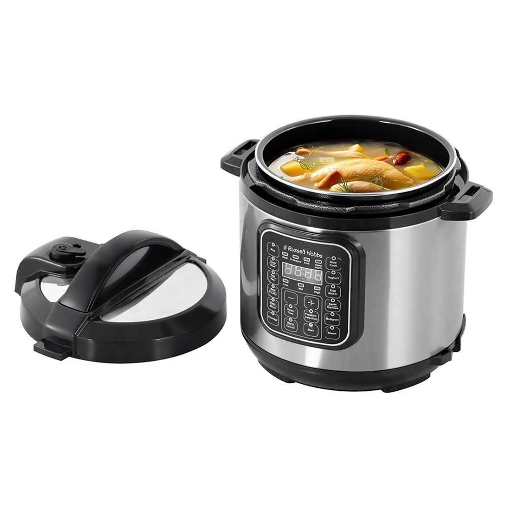 Reimagine home cooking with the Russell Hobbs 6L Electric Pressure Cooker – a powerful, time-saving solution for busy kitchens. With 17 one-touch cooking functions, from stews and soups to yoghurt and rice, it delivers delicious results up to 70% faster than traditional methods. The dishwasher-safe enamel pot, digital timer, and 24-hour delay make meal prep effortless, while advanced safety features and adjustable pressure ensure peace of mind. Designed for convenience, efficiency, and flavour – it’s everything you need in one appliance.