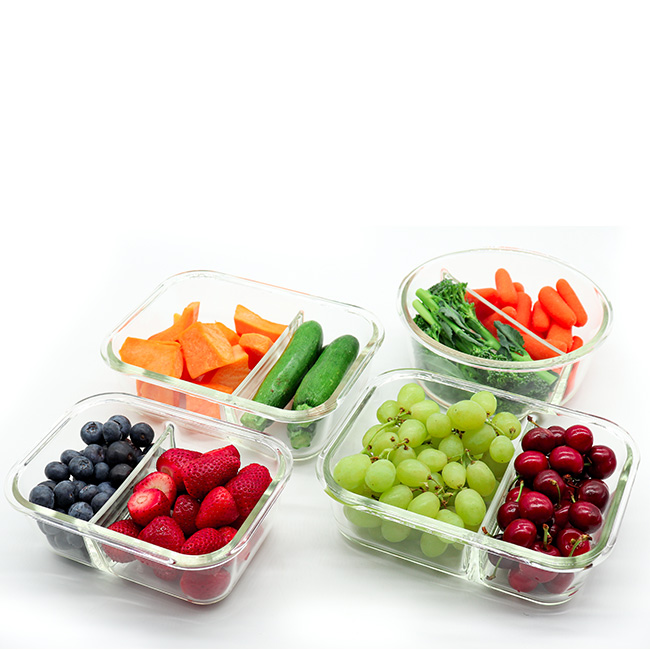 - A set of glass cooking and storage container with a 100% air and liquid tight lid