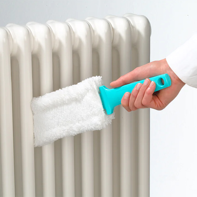 Ideal for cleaning radiators, heaters and blinds, this flat microfibre duster fits exactly between two radiator ribs and takes out even persistent dirt with only one wipe.Â
