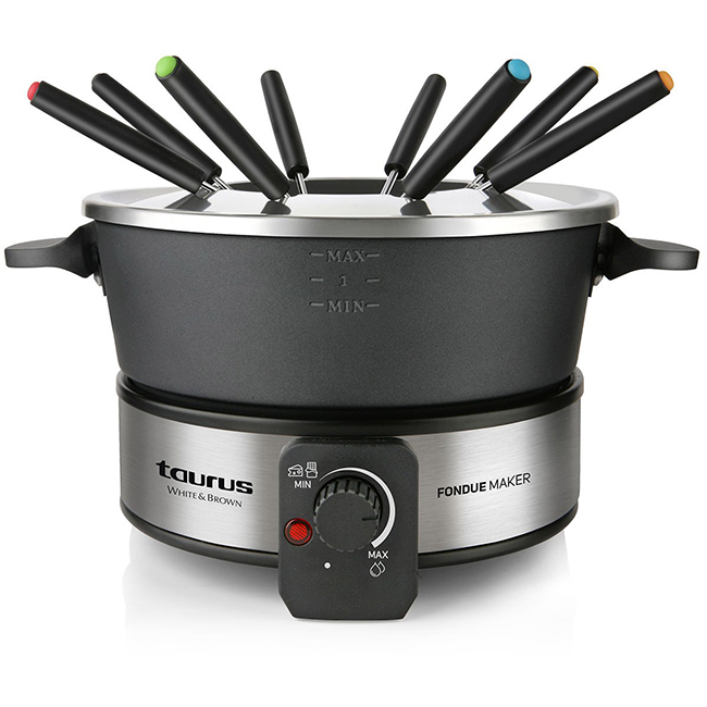 The Taurus Fondue Set is the perfect way to share your meals with family and friends. It includes eight skewers with different colours on the ends with which you can cook your food. Whether you are keen on a savoury cheese, broth or oil fondue or a classic chocolate dessert, this versatile pot can do it all.