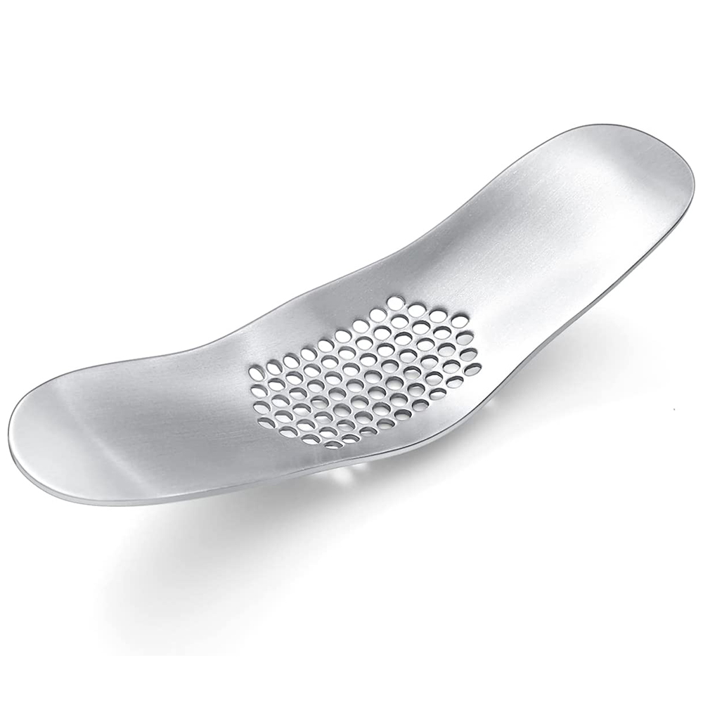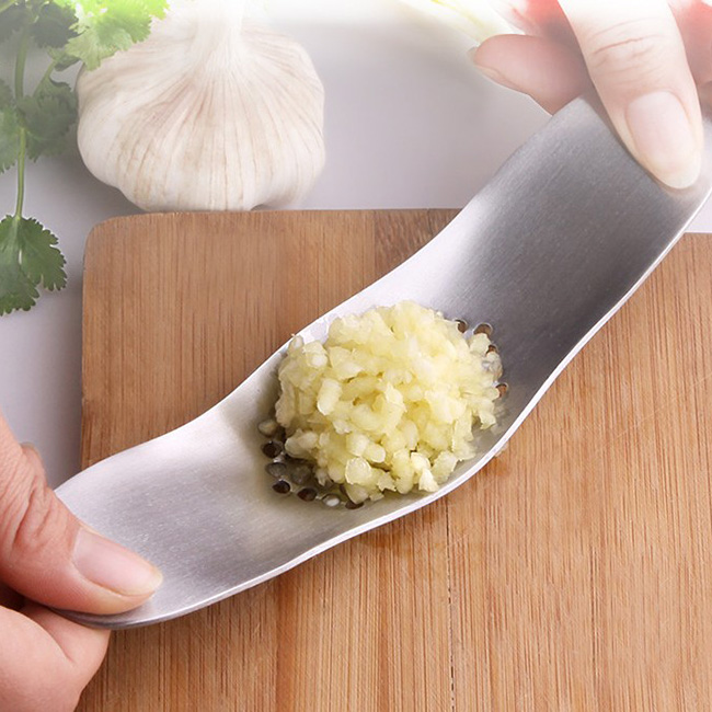 - By using downward pressure and a rocking motion, it crushes garlic cloves quickly and efficiently, forcing the pieces up through the mesh of holes