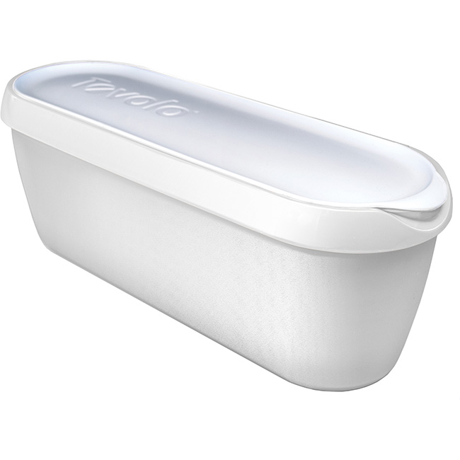 • A slim ice cream tub that neatly stores homemade ice cream, gelato, and sorbet