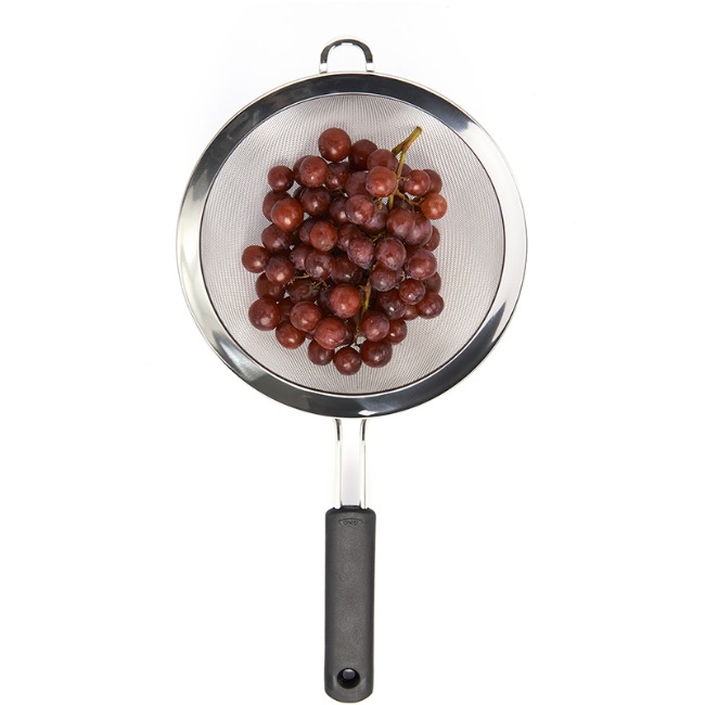 - Fine mesh helps rinse and strain vegetables, berries, pasta, stock and more