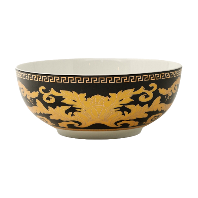 Jenna Clifford’s Grandeur tableware collection channels opulence through dramatic contrast and ornate detail. Deep black porcelain becomes a striking canvas for lavish gold scrollwork and classical borders. Each piece feels regal yet refined, transforming formal dining and special occasions into moments of timeless luxury, glamour, and bold statement table settings.