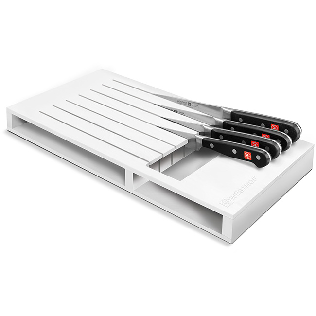 The perfect way to store your quality knives if you are looking for an alternative to counter displays. A stylish and functional drawer insert made from easy care plastic for quick cleaning, while the slots ensure the knives are ready at hand and clearly separated from one another.