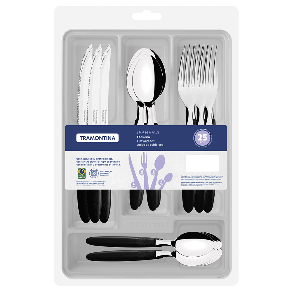 Meet the Ipanema 24pc Cutlery Set — where durability meets everyday charm. Each stainless steel blade shines with a heat-treated edge that slices with confidence. Forks and spoons bring strength from their thick steel build, while polypropylene handles promise lasting grip. Dishwasher safe and fuss-free, this set turns every meal into a smooth performance.