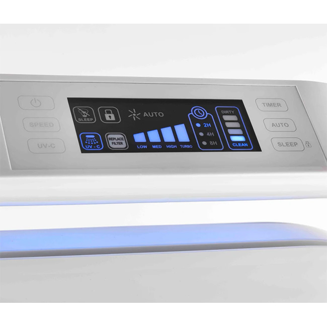 - UV-C light captures and destroys bacteria and viruses, and can be switched on and off