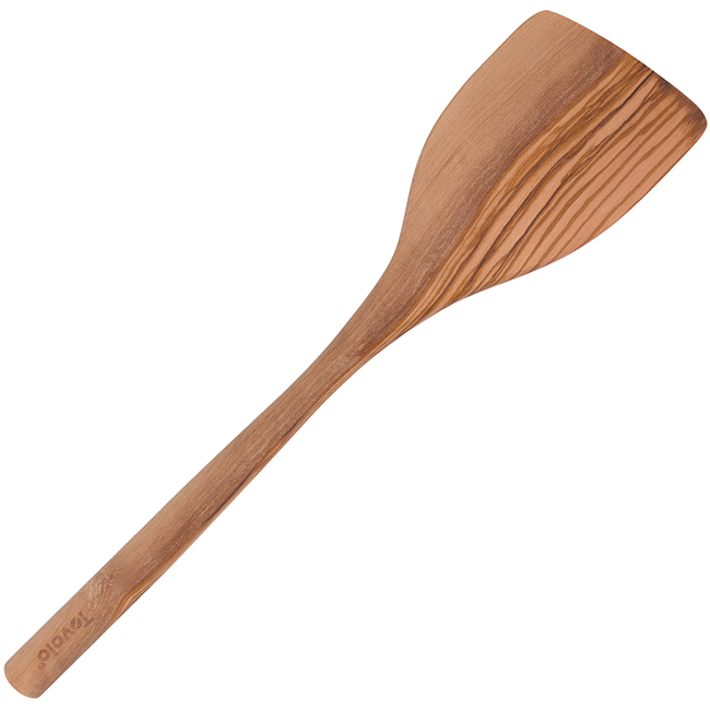 From sautéing veggies to folding omelettes, this Olivewood Angled Turner will be a go-to tool in your kitchen. The tapered edge gently scrapes food from cookware while the ergonomically-shaped wood handle offers a comfortable grip.