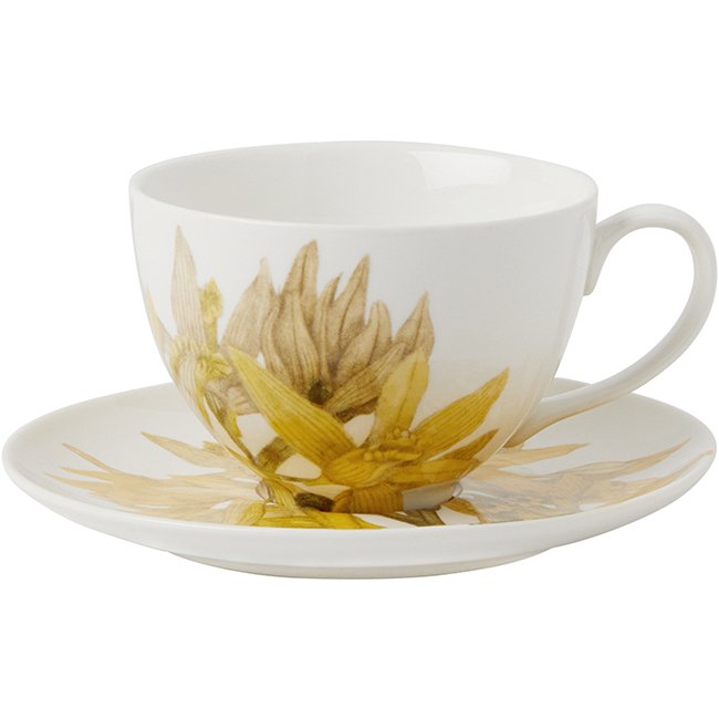 Designed in collaboration with the Royal Botanic Gardens Victoria, this cup and saucer features a hand-coloured lithograph from the Australian Orchids volumes by early Australian botanist Robert D Fitzgerald. This charming set magnificently captures the unique beauty and vivid colours of native florals. with an elegant tapered shape and a generous 350ml capacity.