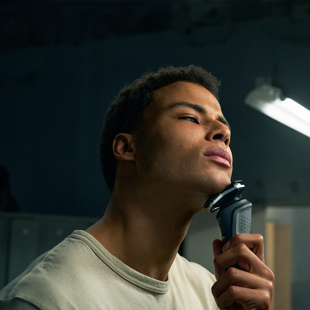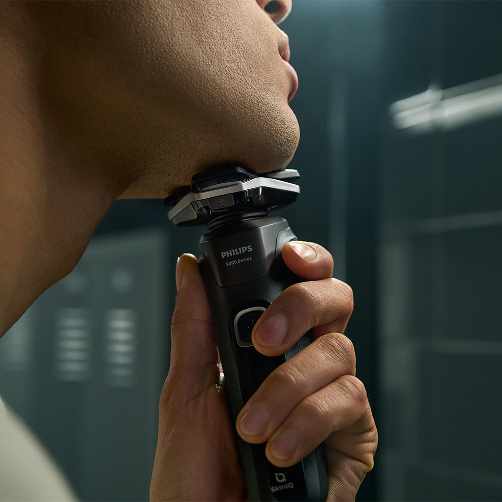 The Philips Series 5000 delivers a powerful shave, cutting now even more hair per stroke, even on 3-day beards. Equipped with advanced SkinIQ technology, the shaver senses and adapts to your hair density, for improved skin comfort.
