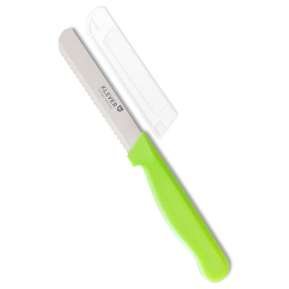 This serrated utility knife doesn’t just slice — it glides with total precision. From crisp radishes to juicy tomatoes, it masters every cut. Soft gherkins? No match. Its wide blade doubles up as a spreader, making it a champion for butter, cheese, or dips. Sharp, versatile, and German-made — that’s kitchen cleverness served daily.