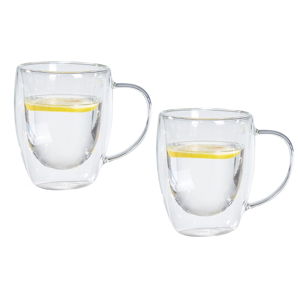 - Set Of 2 Double Walled Glass Mugs, 450ml