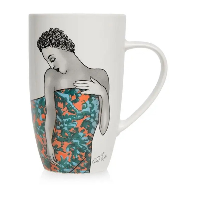 In honour of Breast Cancer Awareness, this mug encourages fighting this disease together — one breast examination at a time. Carrol’s elegant robed figure portrays resilience, courage and community.