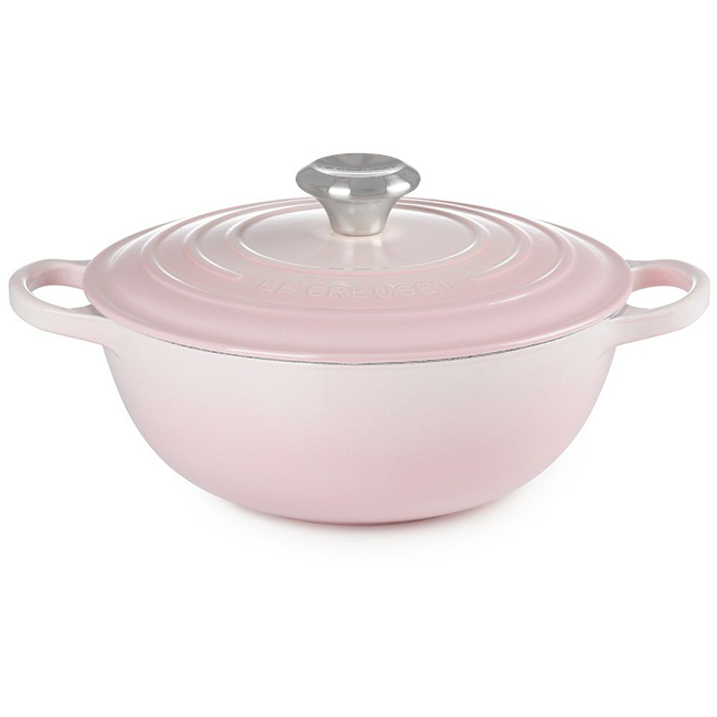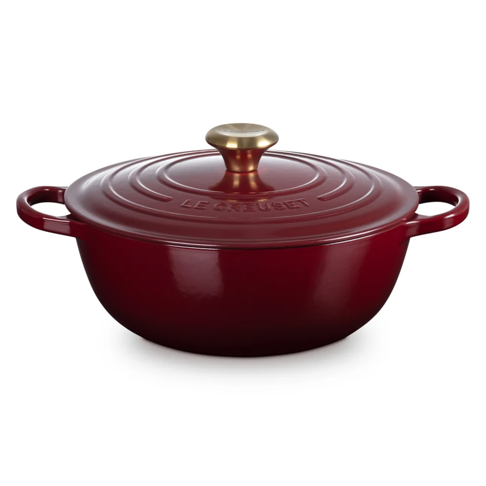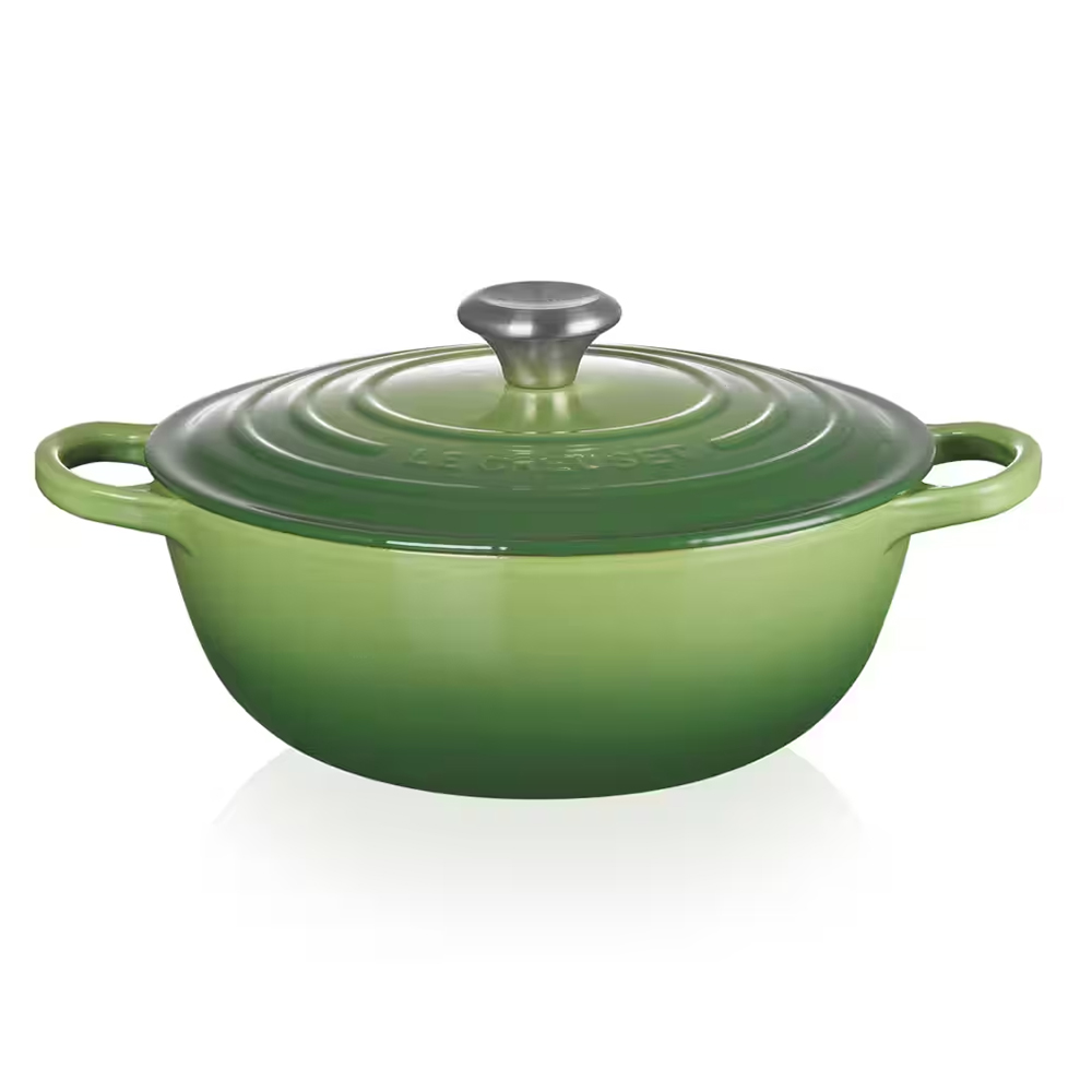 The Le Creuset Signature Soup Pot is the ideal vessel for stovetop simmering, whether preparing stock or a hearty soup. Its sloped sides make stirring more efficient by promoting continuous movement even after the lid is in place. The durable black interior finish requires no seasoning.