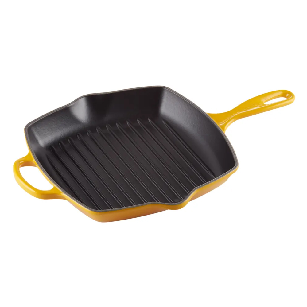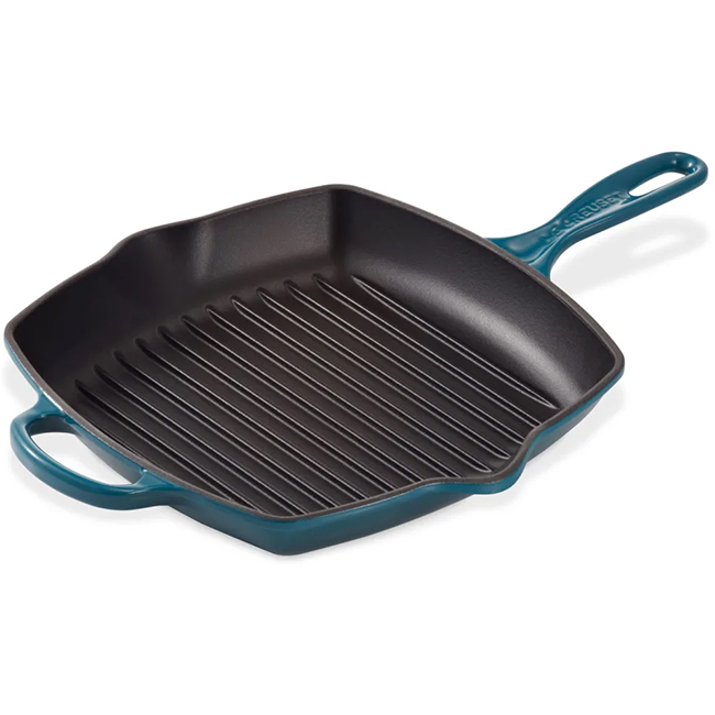 The Le Creuset Signature Square Skillet Grill is a versatile kitchen, giving the delicious flavour of an outdoor grill, with all the convenience of indoor cooking. High ridges allow excess fat and grease to drain, while spouts on either side allow for drip-free pours.