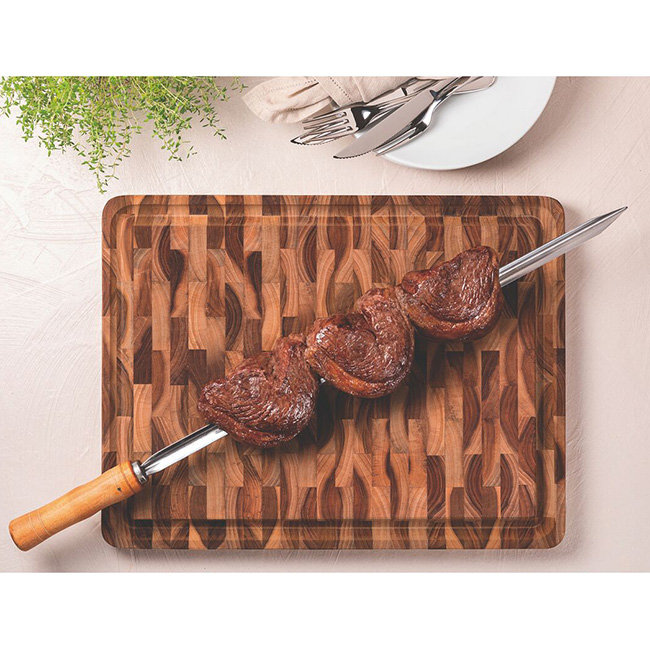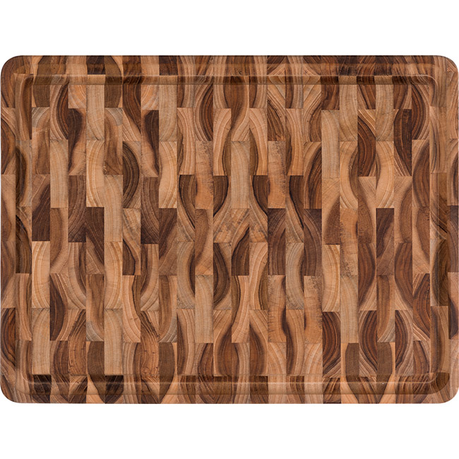 - A solid teak hardwood cutting, carving and serving board