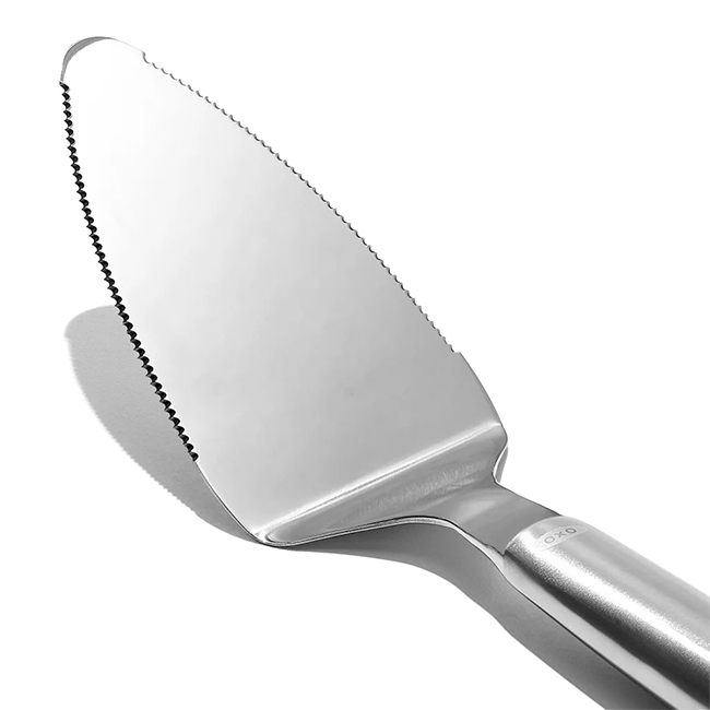 The OXO Stainless Steel Pie Server features serrated edges on both sides for on-the-spot cutting, and a strong-yet-flexible stainless steel head that can easily slide under fragile foods and lift them.