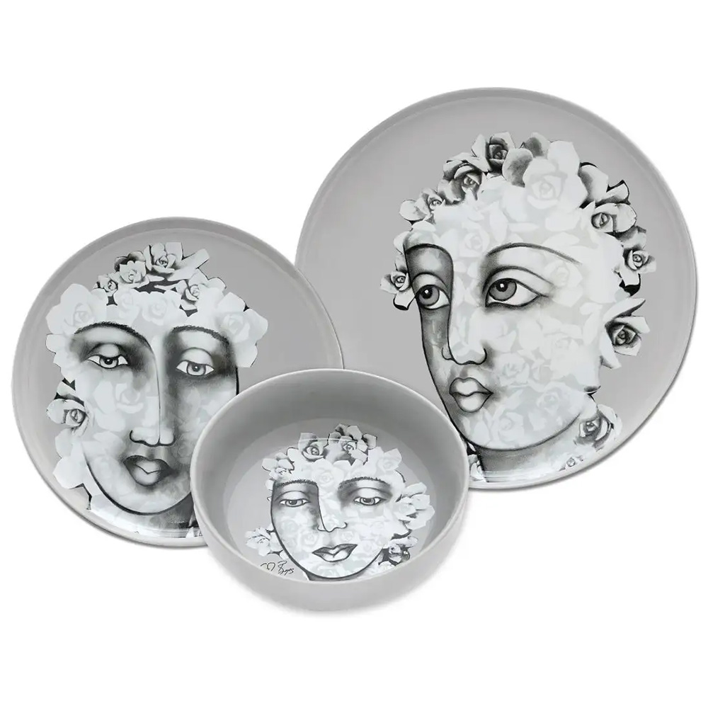 Curate a refined and grey monochromatic table setting with the Succulent Faces’ 12pc Dinnerware Set, comprised of dinner plates, side plates and cereal or soup Bowls for a party of 4. A tribute to the beauty of the African landscape, each piece is adorned with a unique illustration of an expressive face juxtaposed with a bouquet of succulents.