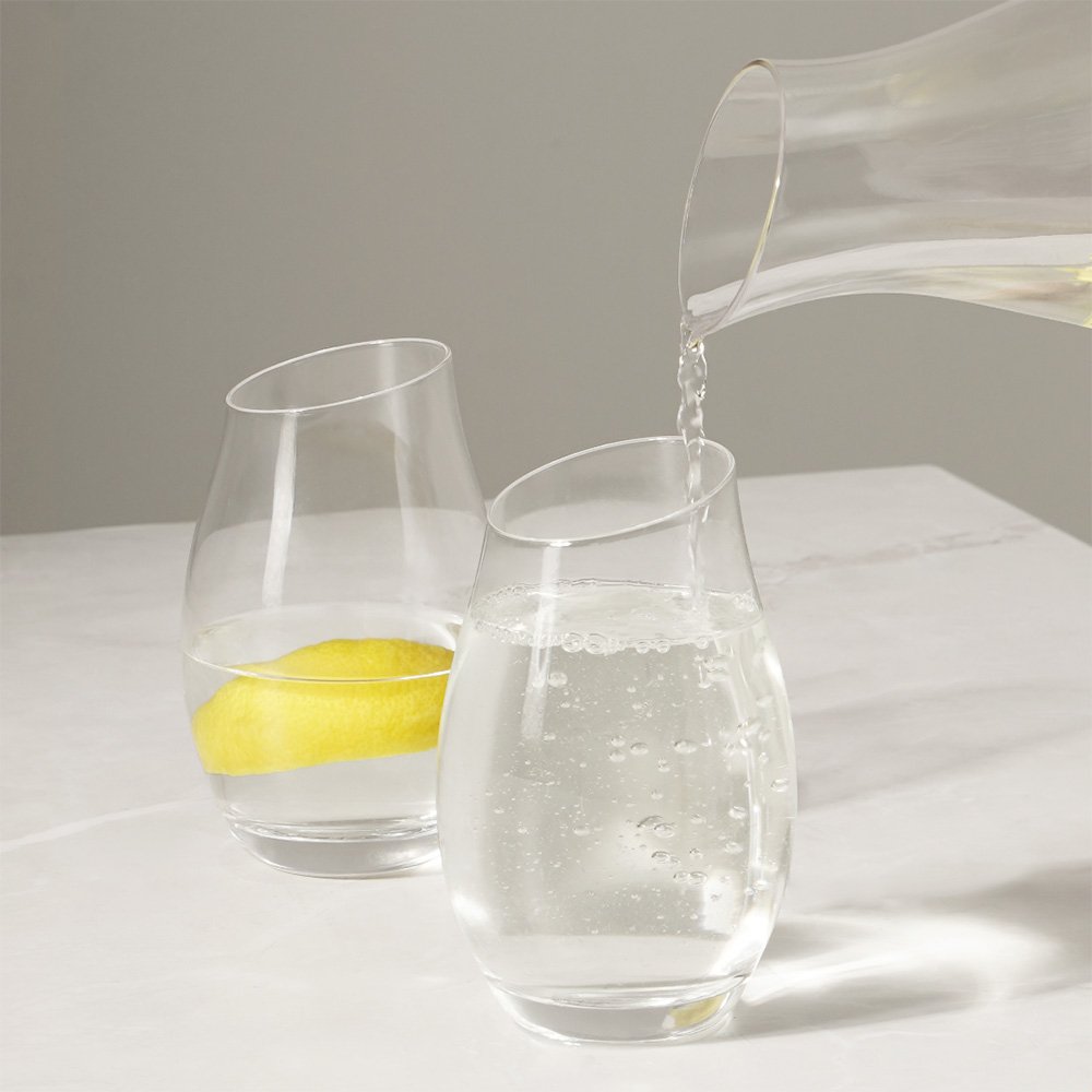 Four everyday and special occasion Sway Glasses, they feature a gently slopped fine rim. Their unique silhouette is a reminder of the Peace Lily —Each glass mouth-blown and hand-crafted by skilled artisans, from lead-free crystalline glass.
