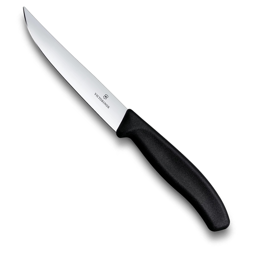 The Swiss Classic Pointed Steak Knife, 12cm, slices through every cut with effortless precision. Whether tackling juicy ribeye, grilled chicken, or Sunday roast, it delivers smooth, satisfying performance. Sharp, balanced, and beautifully made, this knife pairs Swiss craftsmanship with dining comfort — turning every bite into a moment worth savouring.