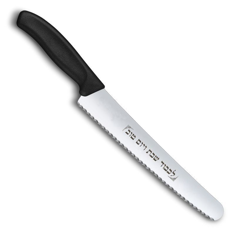 The Swiss Classic Serrated Bread Knife With Hebrew Inscription 22cm, turns every Shabbat and Yom Tov into a moment of grace. Its long, razor-sharp serrated blade slices challah like butter, while the Hebrew engraving adds spiritual charm. Crafted by Victorinox, it blends precision, comfort, and beauty — a sacred slice of Swiss craftsmanship.