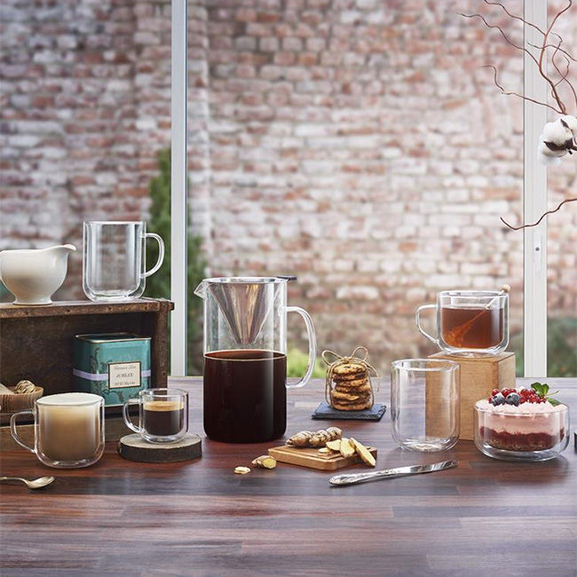 - Crafted from double walled borosilicate glass