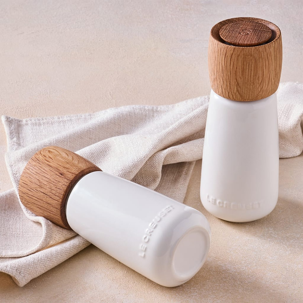 - Stoneware body and silicone caps are dishwasher safe