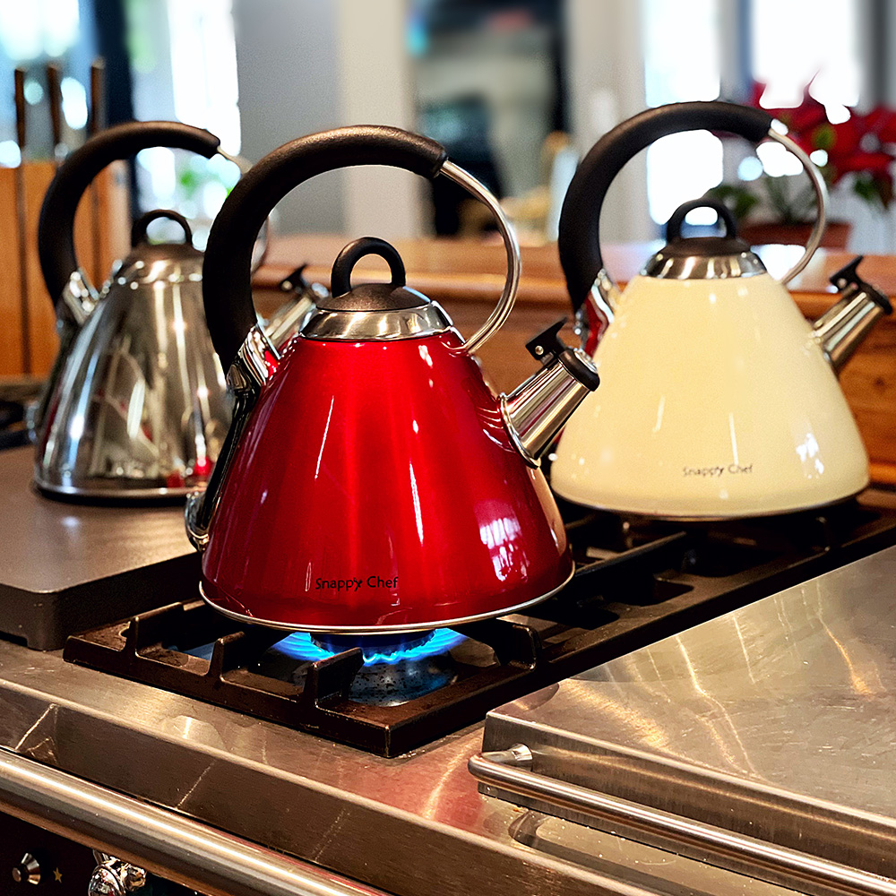 Remember the good old days when the kettle’s whistle indicated it was time for a break and a well deserved cup of coffee? The Snappy Chef trendy retro whistling kettle will not only brighten any kitchen but also make a stunning addition to your home interior.