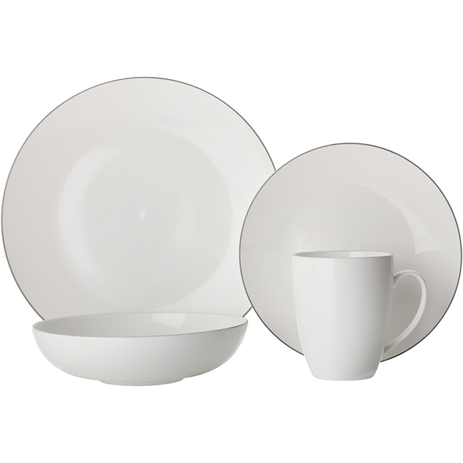 - Part of the timeless White Basics Edge range, this coupe set is designed in white porcelain with a hand-painted grey rim
